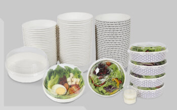 ชามกระดาษ ชามกระดาษ 20 oz พร้อมฝาปิดแบนเรียบ ทั้งแบบสีขาว ลายไทย ขนาด 17 × 17 × 4.2 cm ขายส่งขั้นต่ำ 600 ชิ้น วัสดุเป็นมิตรต่อสิ่งแวดล้อม ย่อยสลายง่าย ปลอดภัย คงทน และไม่รั่วซึม กระดาษไม่อ่อนตัว สะอาดปลอดภัย